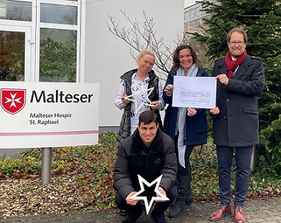 Die bbwe gemeinnützige Gesellschaft für Beratung, Begleitung und Weiterbildung mbH lässt die Sterne funkeln. Insgesamt 50 Sterne wurden von den Auszubildenden der bbwe für den guten Zweck gebastelt und verkauft. Ausbilderin Susanne Stiewe und Auszubildende Darweesh Hasan überreichten uns tolle 250,- €, die durch den Verkauf erzielt wurden. Geschäftsführer Stefan Trost überraschte uns zusätzlich mit einem großartigen Scheck in Höhe von 2.177,- €. Auch dieses Geld ist dem handwerklichen Geschick der Auszubildenden und Teilnehmer des Jugendhilfeträgers geschuldet, denn es stammt aus dem Verkauf selbstgebastelter Ware der letzten beiden Adventsmärkte in der Mülheimer Altstadt. Wir sind hocherfreut über die großzügige Spende und über einen wunderschönen funkelnden Stern, der unser Haus schmückt.