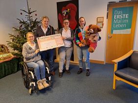 Am Freitag, 22.12.2023 haben drei Vertreterinnen des Mündelheimer Strickkreises, Frau Menzel, Frau Steinkamp sen. und Frau Steinkamp jun. eine Spendensumme in sagenhafter Höhe von 1111, 11 € aus dem Erlös der liebevoll selbsthergestellten Produkte zur Adventszeit überreicht. Der Strickkreis war selbst überrascht von der Summe, die zusammengekommen ist. Die eigenen Erwartungen wurden um ein vielfaches übertroffen. Wir freuen uns sehr über dieses tolle Engagement zur Unterstützung unserer Kinder- und Jugendhospizarbeit.