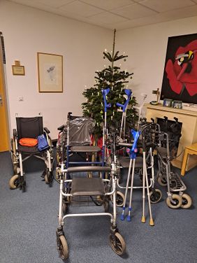 Über einen privaten Kontakt hat uns vor Weihnachten ein Hilferuf aus der Ukraine nach Rollatoren, Rollstühlen und Krücken ereilt. Ein Krankenhaus an der Front habe dringenden Bedarf, um damit verwundete Soldaten zu versorgen. Da wir uns als Hospizzentrum selber so vielfältig unterstützt wissen, war es uns ein Anliegen, den verletzten Soldaten ein kleines Zeichen der Verbundenheit zu senden. Wir haben privat Hilfsmittel gesammelt, und auch im Hospiz ausrangierte Rollatoren und Rollstühle zusammengestellt. Diese sind nun Dank der Initiative einer sehr engagierten Ukrainerin, die schon lange in Deutschland lebt, mit dem Bus in der Ukraine angekommen.